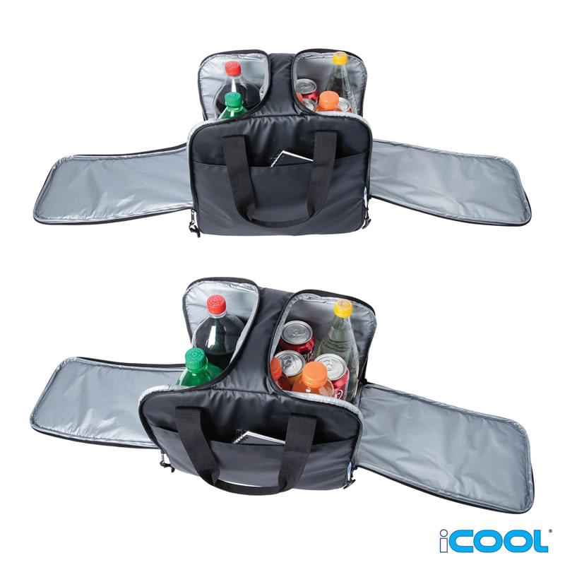 The  iCool® Crossland 24-Can Cooler is made from durable and lightweight genuine 600D nylon and has an exterior water resisant coating, thick 6mm foam insulation and food-grade PEVA lining to protect any items you bring with you. It has a unique butterfly opening and a movable insulated center divider that can keep your cold and hot items separated. It also features a removable and adjustable 1 1/2" x 50" shoulder strap, top carry handles, easy-to-use T-bar zip pullers, a front side slip pocket and it collapses down when not in use for easy storage. The Crossland is an excellent solution for bringing lunch to work, grocery shopping, or as a travel cooler for a family road trip. A portion of all proceeds are donated to Shelter to Soldier™, a non-profit organization that rescues dogs to train as service animals for veterans in need.